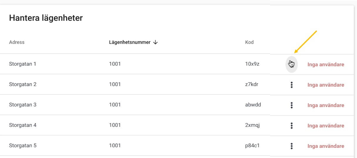 2. Leta upp hushållet som ni behöver infolapp till och klicka på de tre prickarna.