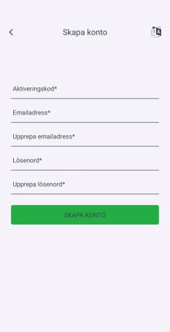 3. I översta fältet fyller du i din lägenhetskod som du fått av t.ex. styrelsen. Fyll sedan i resten av uppgifterna och tryck på Skapa Konto.
